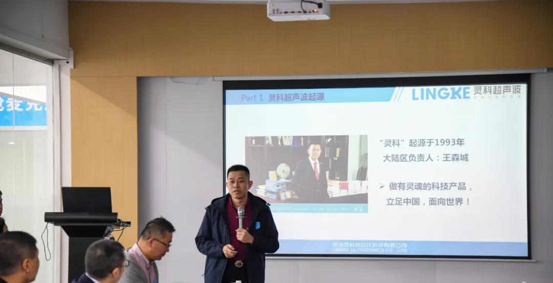 隨后,靈科超聲波總經(jīng)理王森城從企業(yè)起源、超聲波焊接原理、主營(yíng)產(chǎn)品及應(yīng)用領(lǐng)域三方面為大家介紹靈科超聲波。