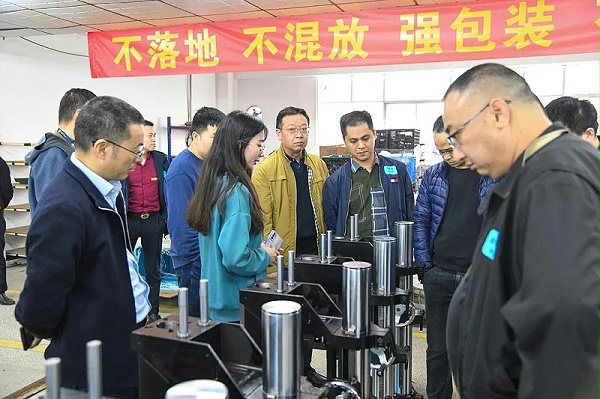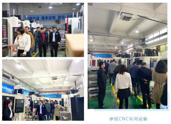 王總與管理層代表陪同會(huì)員企業(yè)家一起參觀靈科超聲波CNC智能生產(chǎn)車間。