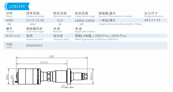 特點:換能器將高頻高壓信號轉換成機械振幅;不同的外形尺寸對應不同的功率;