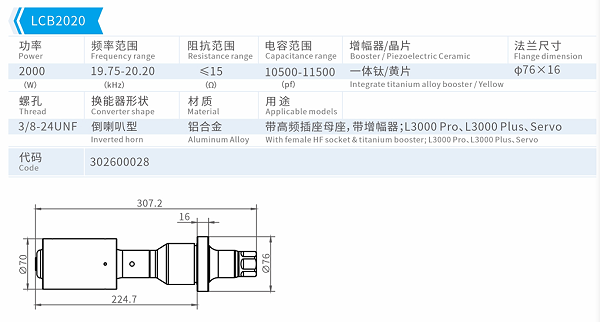 特點:換能器將高頻高壓信號轉換成機械振幅;不同的外形尺寸對應不同的功率;