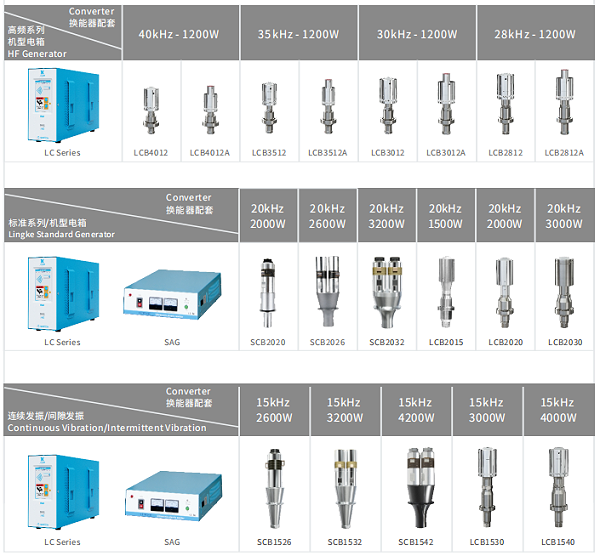 特點(diǎn):換能器將高頻高壓信號(hào)轉(zhuǎn)換成機(jī)械振幅;不同的外形尺寸對(duì)應(yīng)不同的功率;