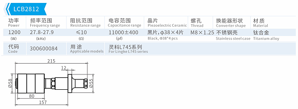 特點:換能器將高頻高壓信號轉換成機械振幅;不同的外形尺寸對應不同的功率;