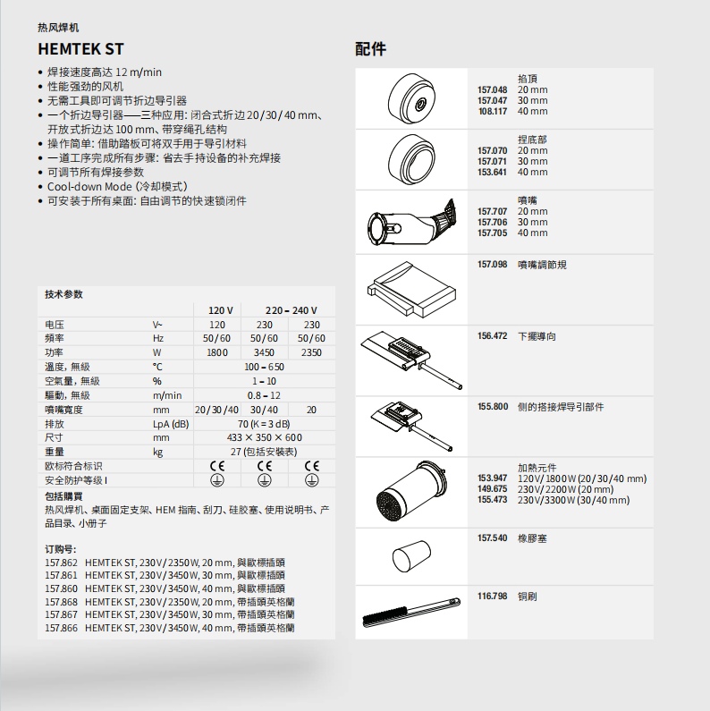 特點:焊接速度高達12 m/min;風機性能強勁,操作簡單;無需工具即可調(diào)節(jié)折邊導引器;焊接支持閉合式折邊、開放式折邊、帶穿繩孔結(jié)構(gòu);可調(diào)節(jié)所有焊接參數(shù),自由調(diào)節(jié)快速鎖閉件;
